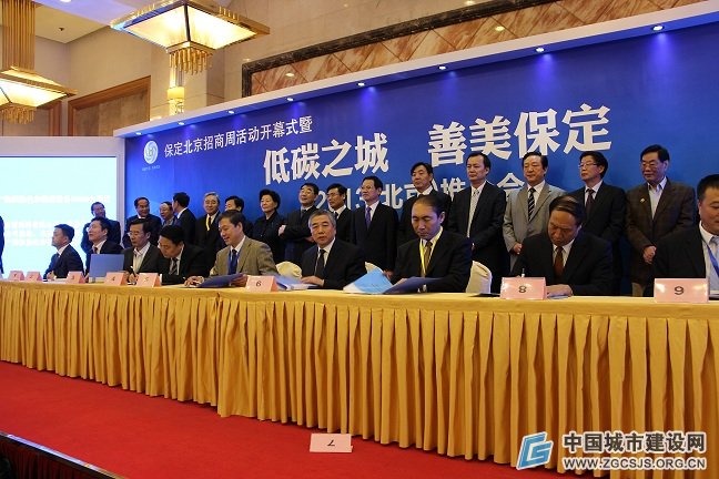 招商周拟签约项目34个项,总投资753.97亿元,拟引进资金724.2亿元,项目涉及交通、能源、新能源、汽车、商贸物流、高新技术、化工等领域。当天共有中电投新能源项目、恒天汽车产业园项目、华电国际电力股份有限公司风光互补开发项目、中药产业升级与协同创新基地项目、北京交大科技产业园项目、北京四方智能电网生产基地项目、京能涿州热电联产项目、中国汽车零部件(保定)产业基地等18个项目签约 ,总投资615.2亿元。