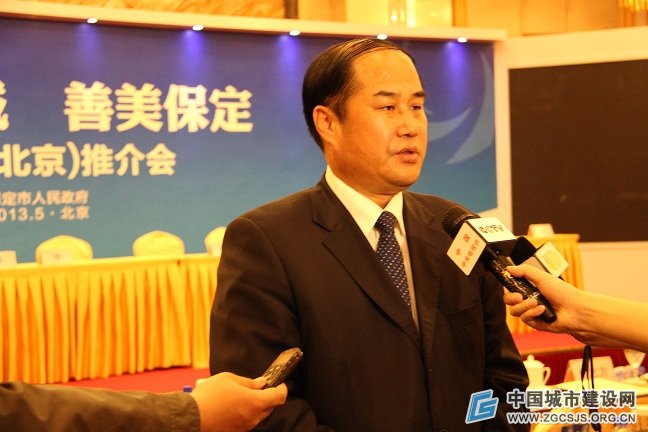 保定市长马誉峰在活动现场接受媒体采访