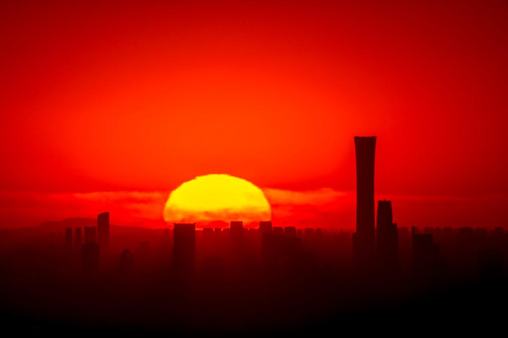 2022年9月23日正值秋分,当天日出时,在北京市门头沟区拍摄的“悬日”景观。
