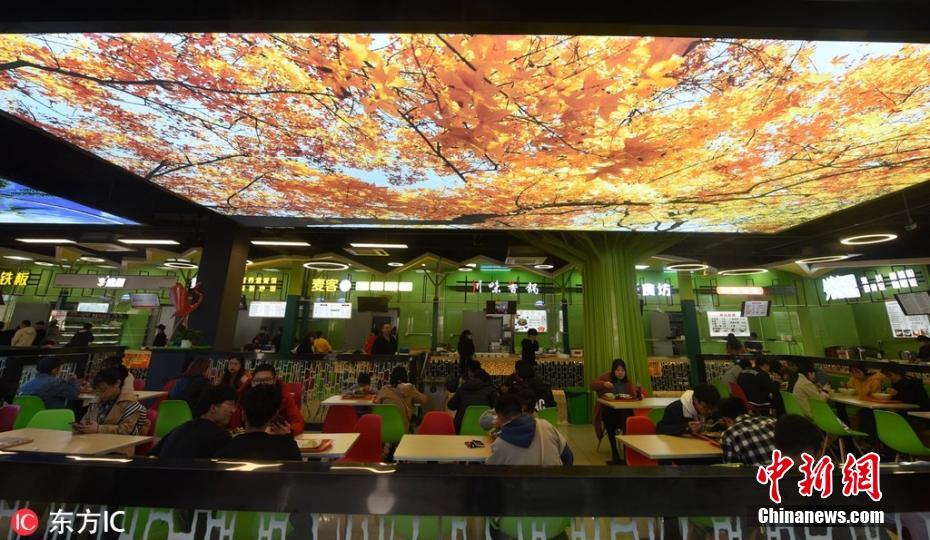 杭州一大学食堂变身“公园” “四季美景”抬头可见