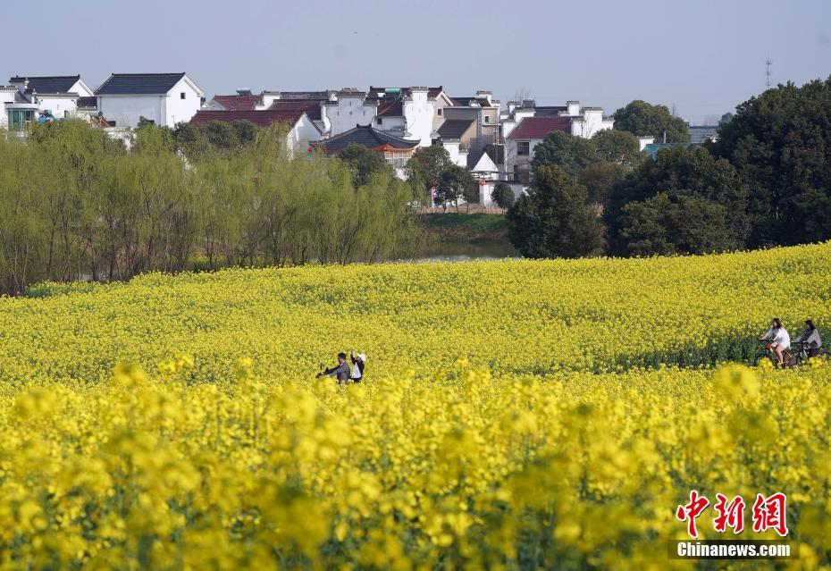 3月19日,游客在南京桠溪国际慢城盛开的万亩油菜花田中享受休闲时光。面积50平方公里、生态环境保护良好的桠溪国际慢城位于江苏省南京市高淳区,是经国际慢城联盟认证的中国第一个“国际慢城”。中新社记者 毛建军 摄
