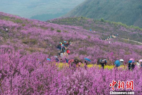 游客络绎不绝。近年来,当地政府强化封山育林措施,紫荆花逐渐成片、成林,宛如落霞,引得八方游客纷至沓来。