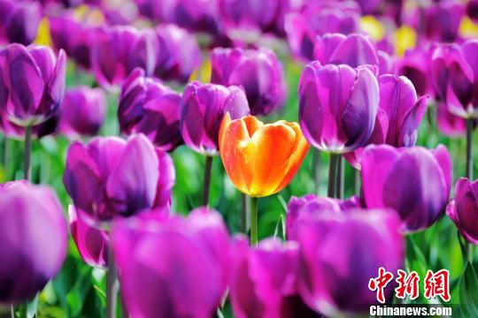 4月14日,安徽合肥植物园迎来赏花观景的旺季,郁金香进入盛花期,一朵朵娇艳欲滴的郁金香竞相开放,吸引了众多市民前来游玩,享受美好春光。