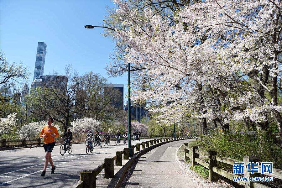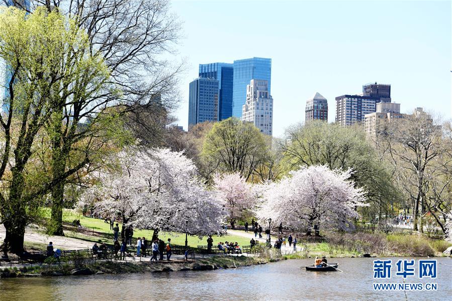 4月16日,人们在美国纽约中央公园的草坪上休憩。随着气温回暖,4月的纽约告别了漫长冬季,春花烂漫,生机盎然。 新华社记者韩芳摄