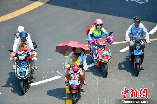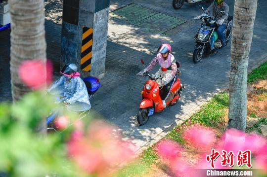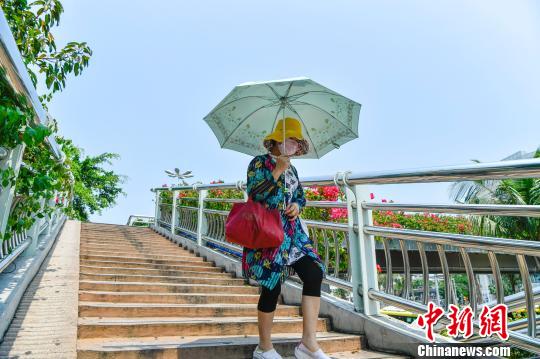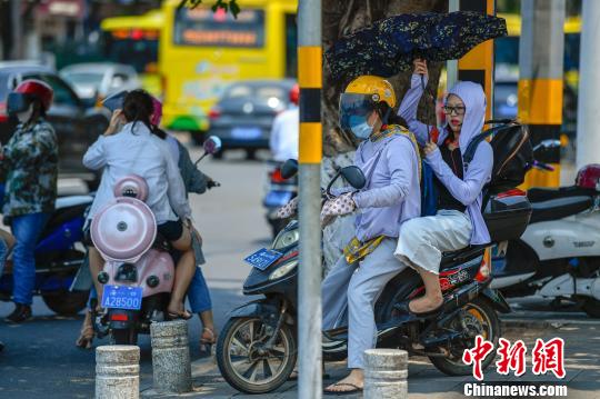 海南多地连续多日高温 民众“全副武装”出行