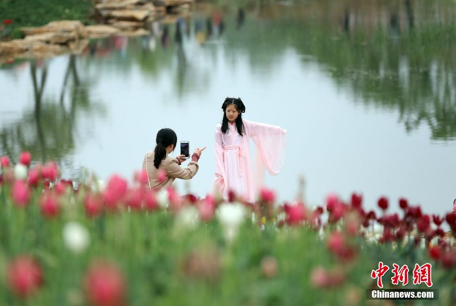 4月21日,陕西省洛南县“锦绣大地·盛世花开”首届郁金香节开幕。此次开园的锦绣大地旅游景区,是洛南县充分利用农业生产资源和自然生态资源,精心策划实施的加快农业经济转型、打造全景洛南、带动精准脱贫、助推乡村振兴的田园综合体项目。该项目计划总投资8亿元,目前景区已完成种植观赏乔木5万余株,名贵观赏花卉800多亩,其中郁金香500余亩,17000平方米的功能配套区已投入使用。中新社记者 毛建军 摄