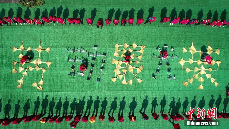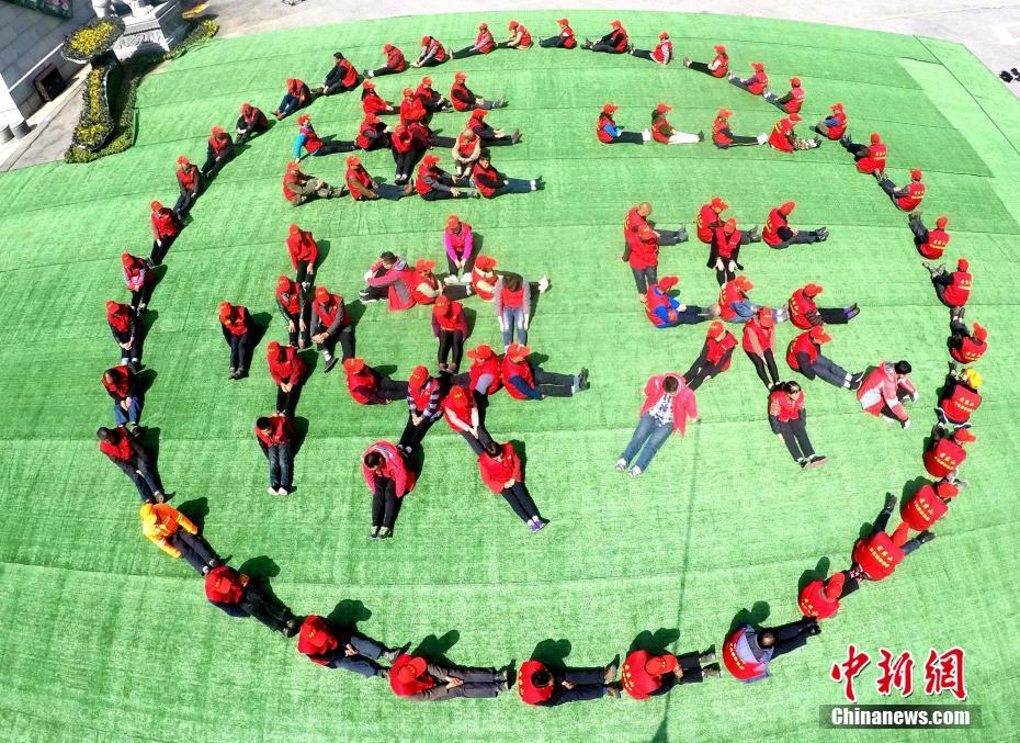 4月29日,河南栾川老君山上百名环卫工人汇聚一堂,分组拼出“五一快乐”字样,迎接五一国际劳动节的到来。 中新社记者 王中举 摄