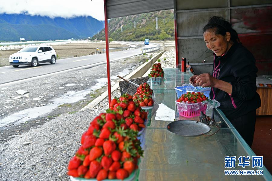 如今,村里为28户家庭按每户两座的标准统一修建钢架结构温室大棚,总占地50多亩。去年,平均每个大棚草莓产量达800斤,全村全年草莓种植总收入达185万余元。新鲜清甜的草莓,通过川藏公路在较短时间便可进入雪域高原的寻常百姓家。