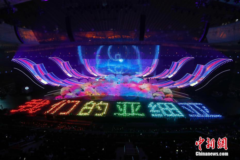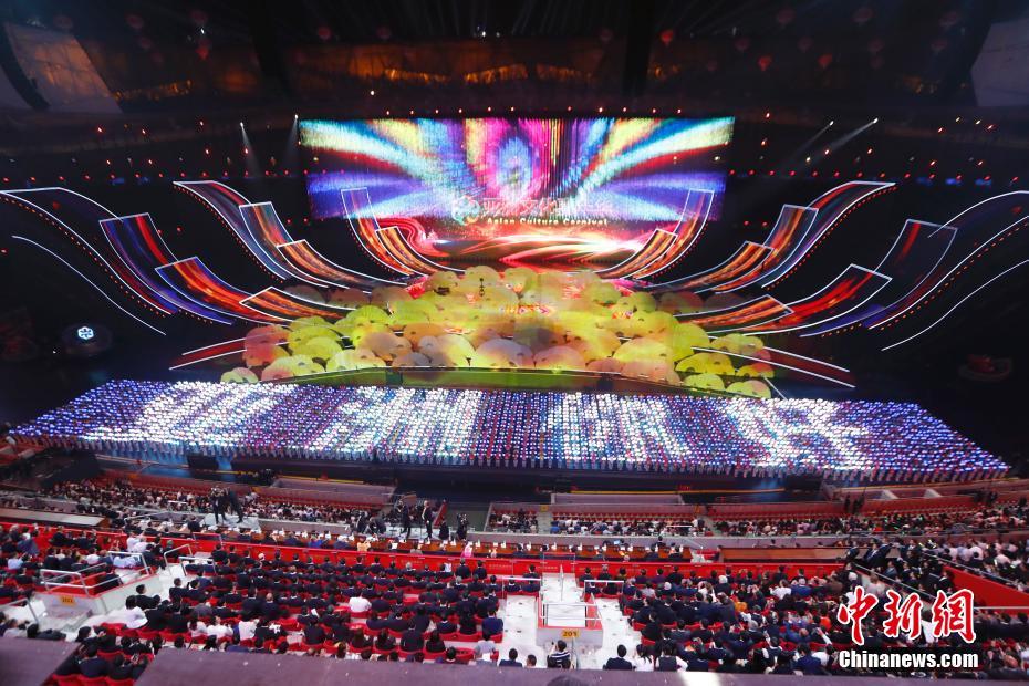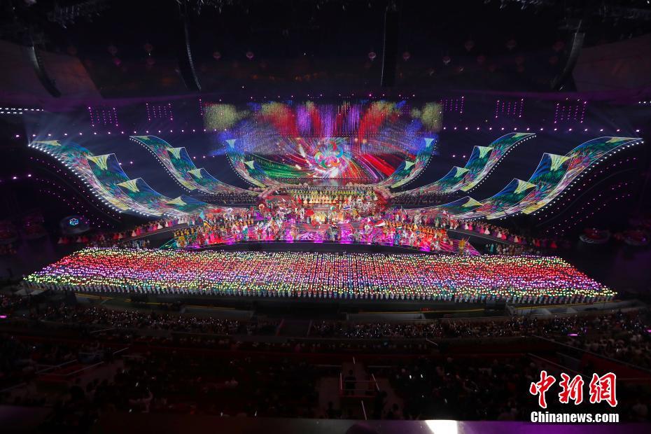 5月15日晚间,亚洲文明对话大会亚洲文化嘉年华活动在位于北京的国家体育场“鸟巢”举行。图为交响互动大合唱《我们的亚细亚》。中新社记者 侯宇 摄