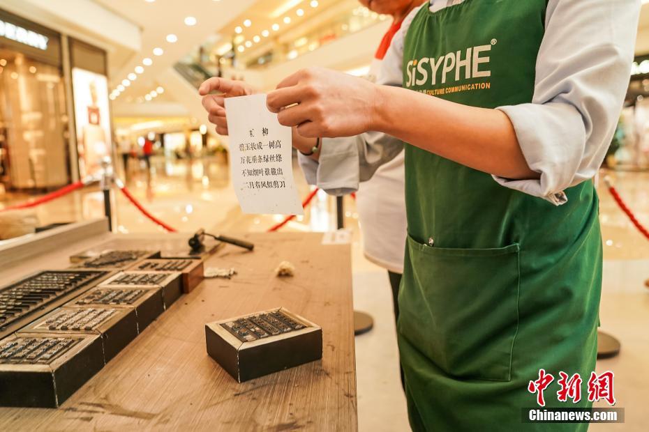 近日,广西南宁一商场内的活字妙趣博物馆开馆,该馆将汉字及活字印刷工艺的发展历史以生动的形式做了展现,并穿插了一系列的汉字游戏项目,吸引不少民众前来参观体验。陈冠言 摄