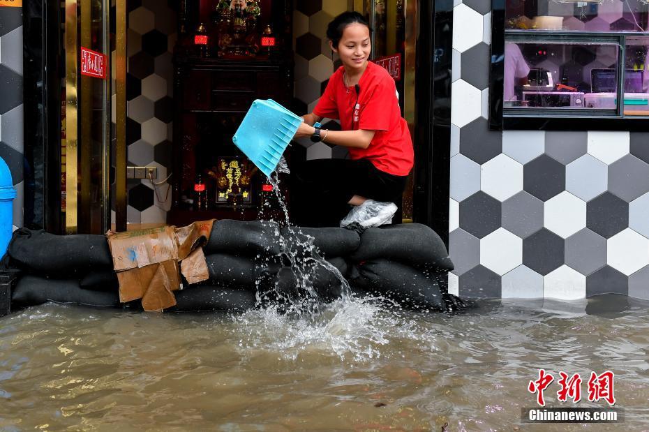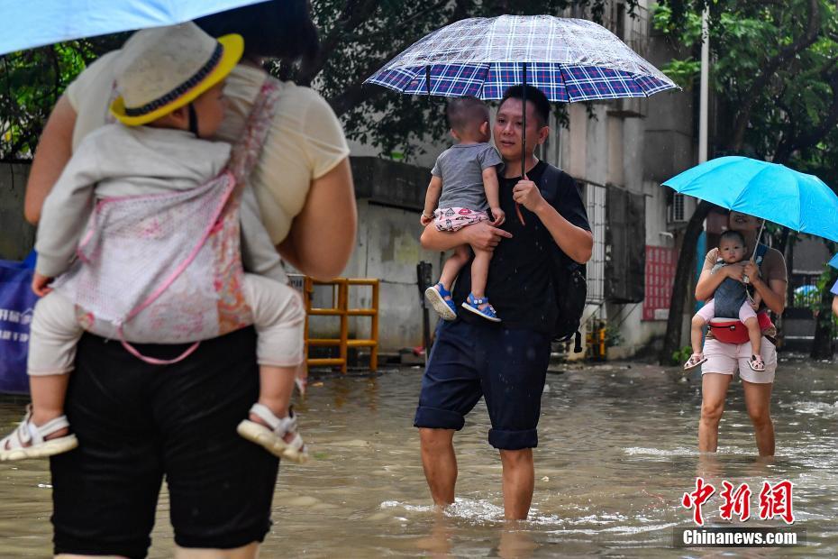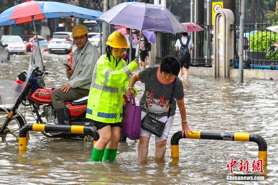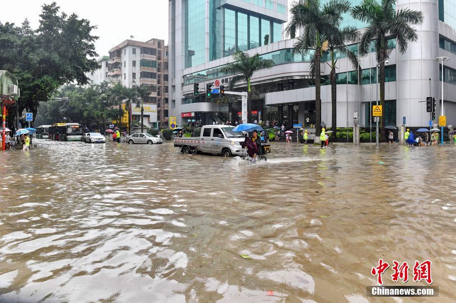 5月29日,广州番禺,市民涉水出行。当日,广州出现了大到暴雨、局部大暴雨天气,市区多个路段出现道路水浸、通行缓慢等情况,来往行人纷纷卷起裤管淌水过街。中新社记者 陈骥旻 摄