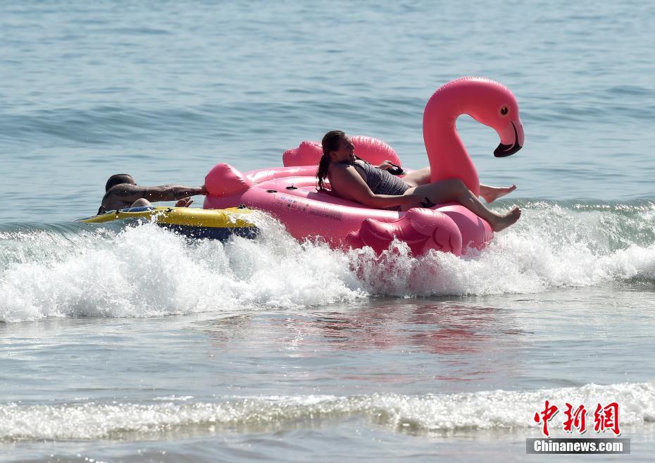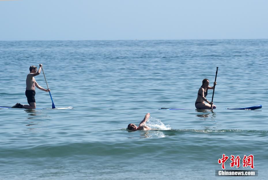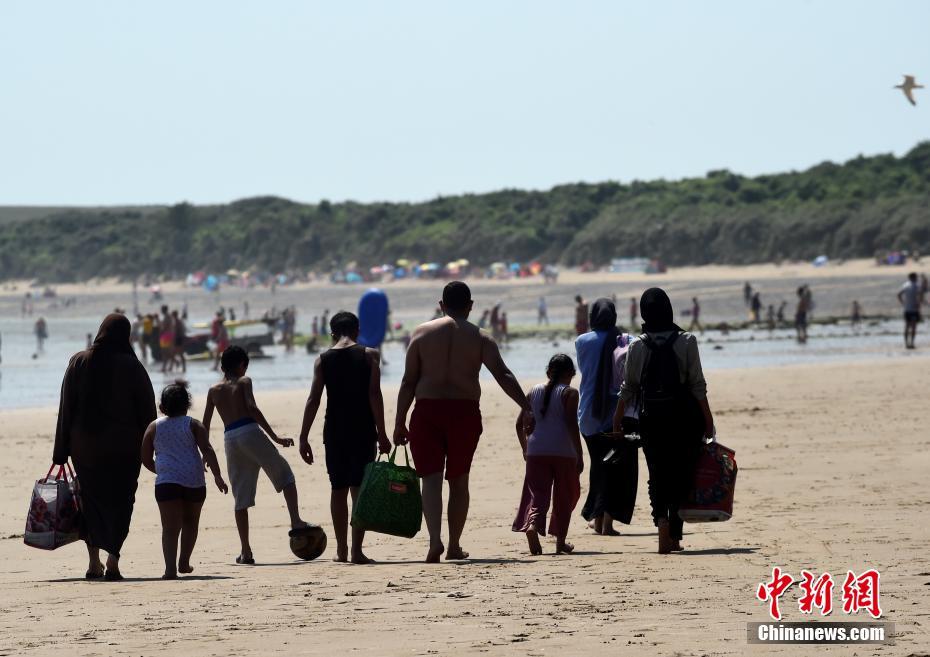 当地时间2019年7月23日,英国威尔士,当地迎高温天气,民众到海滩享受休闲时光。