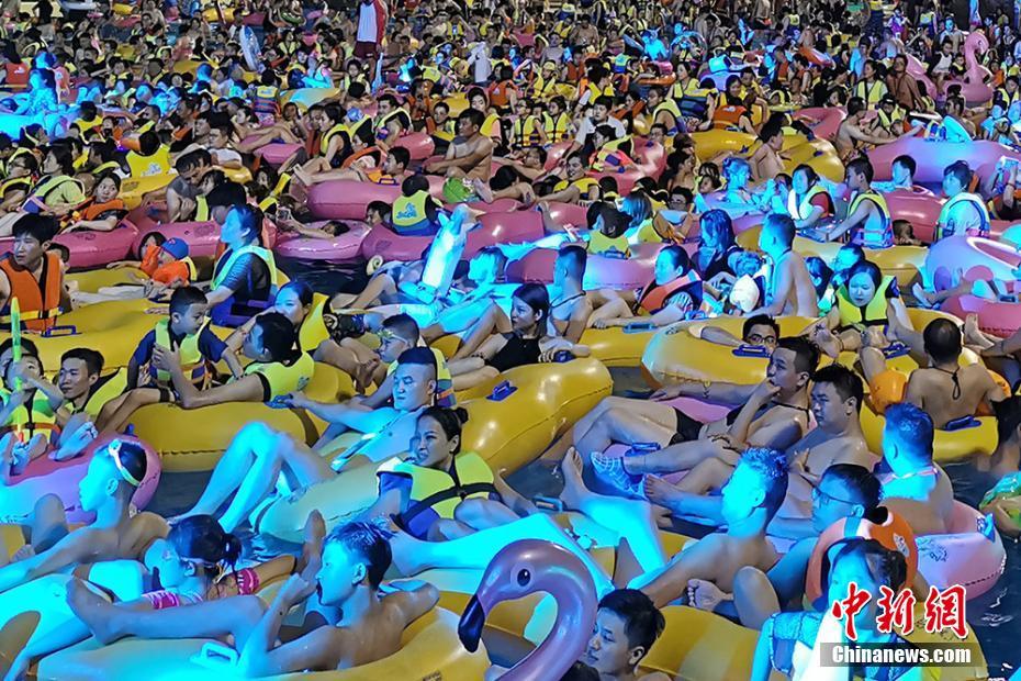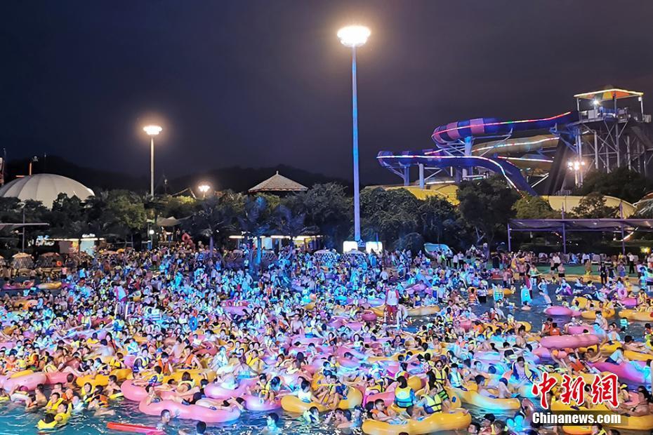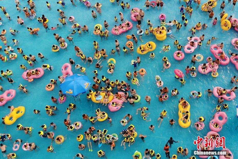 出梅入伏以来,长三角迎来高温“暴击”,遭受闷热侵袭的民众纷纷开启多样避暑旅游,只想“哪儿凉快去哪儿”。7月27日,大批民众涌进江苏溧阳天目湖水世界避暑纳凉,摩肩接踵犹如“下饺子”。当日18时,中央气象台发布高温橙色预警。何建 摄