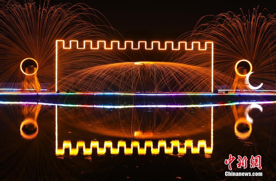 8月7日晚,北京世界公园内的梦幻灯光秀缤纷璀璨。以“梦幻仲夏 璀璨之约”为主题的2019北京世界公园“梦幻仲夏狂欢季”系列游园活动吸引了众多游客参与。灯光秀、歌舞秀、非遗打铁花等活动精彩纷呈,点亮北京夏日夜生活。中新社记者 赵隽 摄