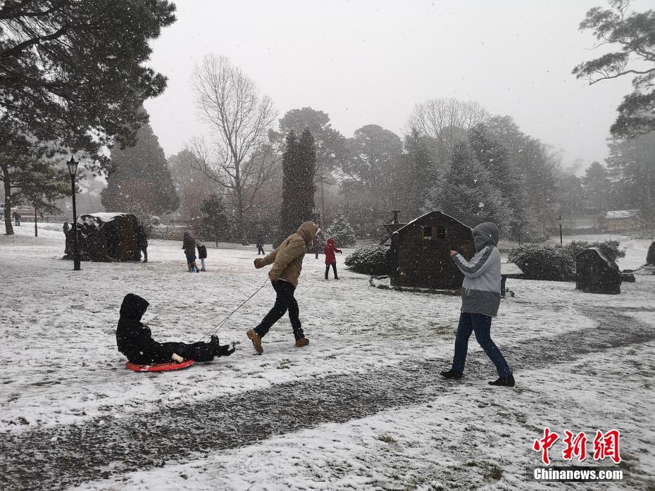 当地时间8月11日,距悉尼市中心120公里的蓝山高海拔地区局部降雪,吸引民众前往观赏。近期位于南半球的澳大利亚气温骤降,多地大风,高海拔地区出现降雪。图为市民拍摄雪景。中新社记者 陶社兰 摄