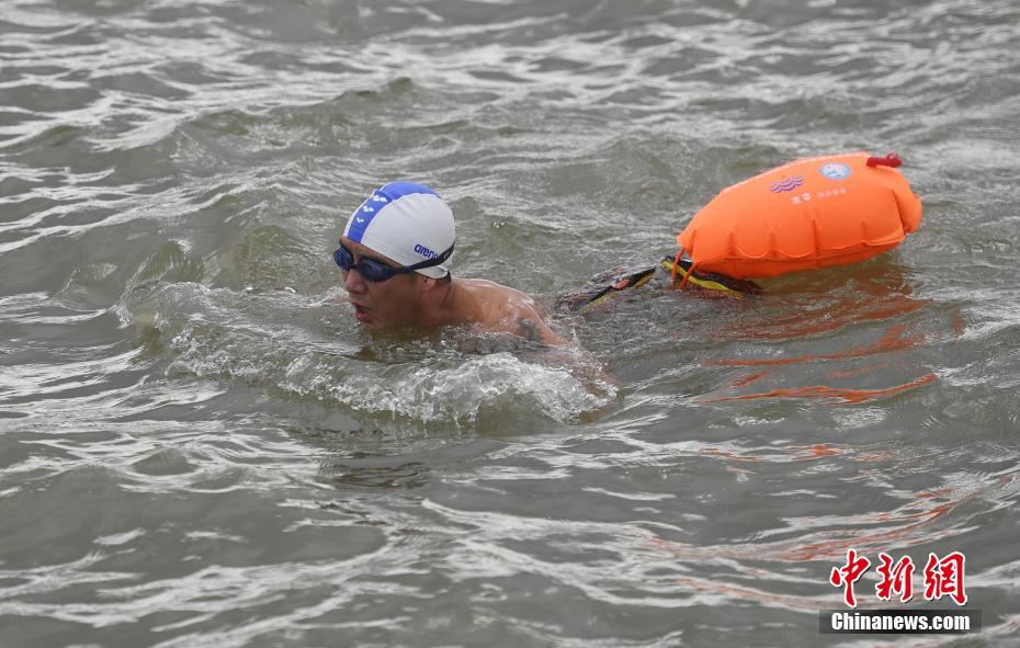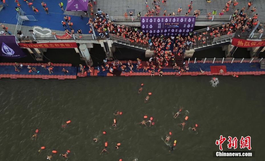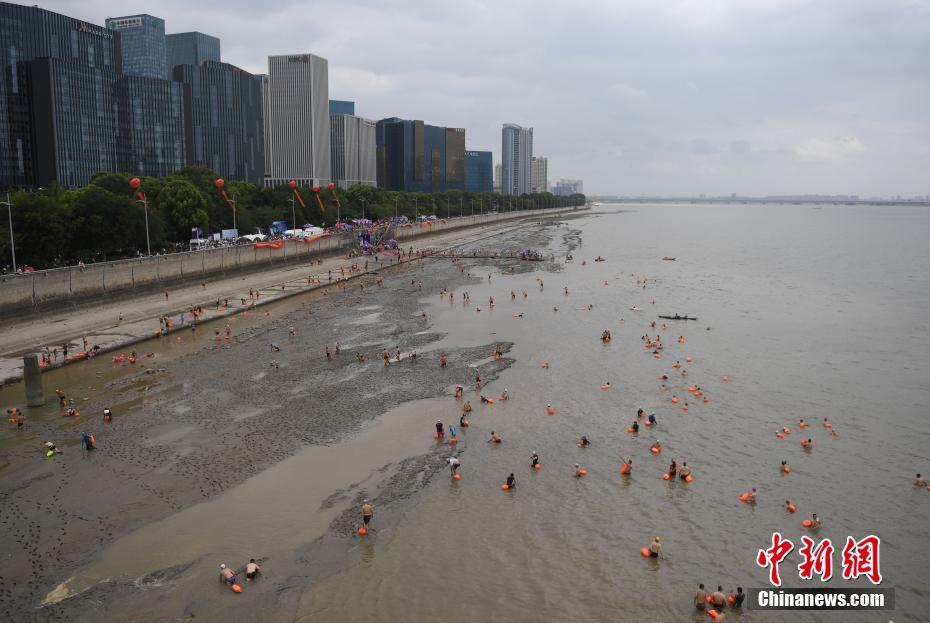8月25日,2019横渡钱塘江活动在浙江杭州举行,两千余人逐浪钱塘江。 中新社记者 王刚 摄