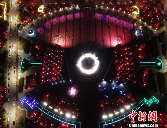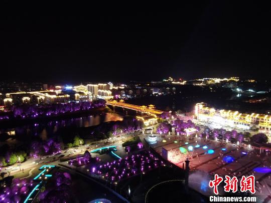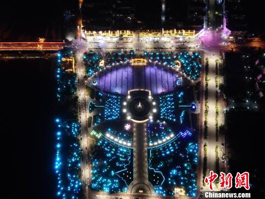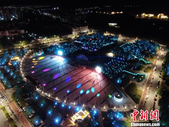 中国最美乡村江西婺源,又被人们称为梦里老家。为展示婺源城市特色、提高市民生活品质、促进城区商业旅游业繁荣发展,该县重点对文化广场进行夜景提升改造。从空中俯瞰,亮化景观与音乐喷泉灯光秀相结合,灯光斑斓,夜色迷人,当地民众在广场上或游玩散步或成群起舞。