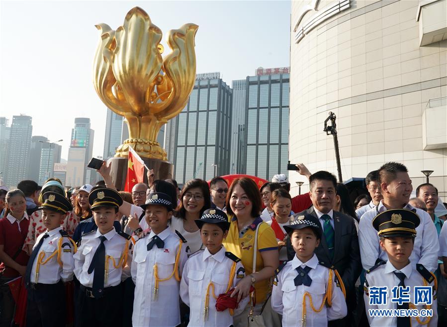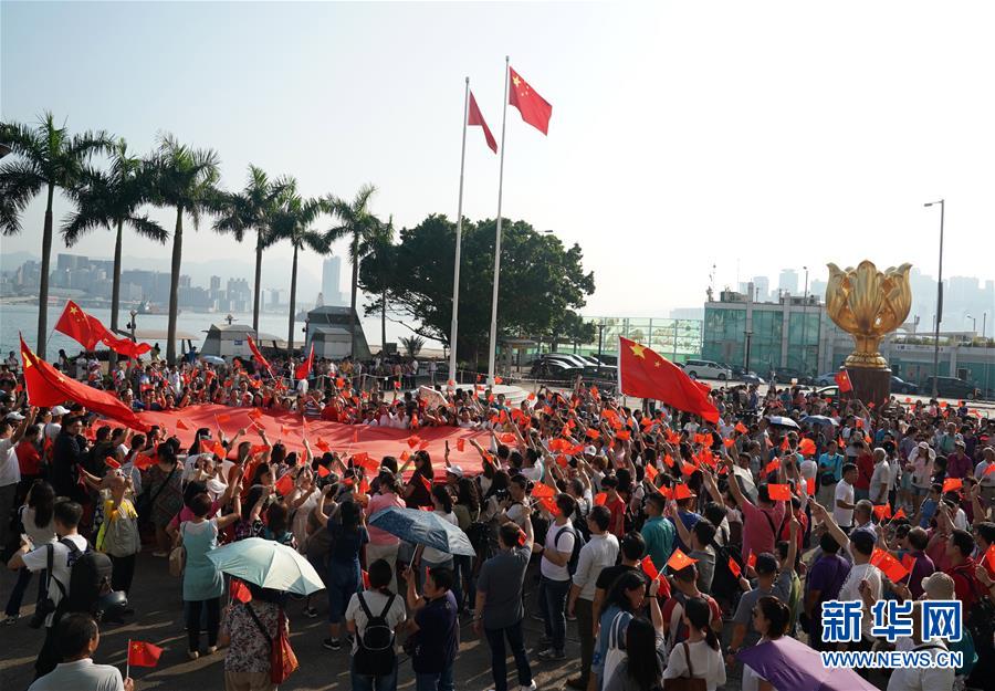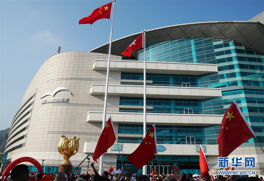 9月8日,香港金紫荆广场举行的升旗仪式。 新华社记者 李钢 摄