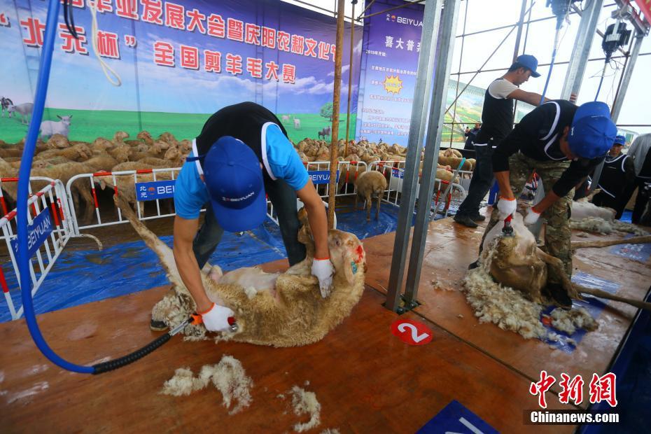 全国32名选手甘肃庆阳PK剪羊毛 动作娴熟不伤羊