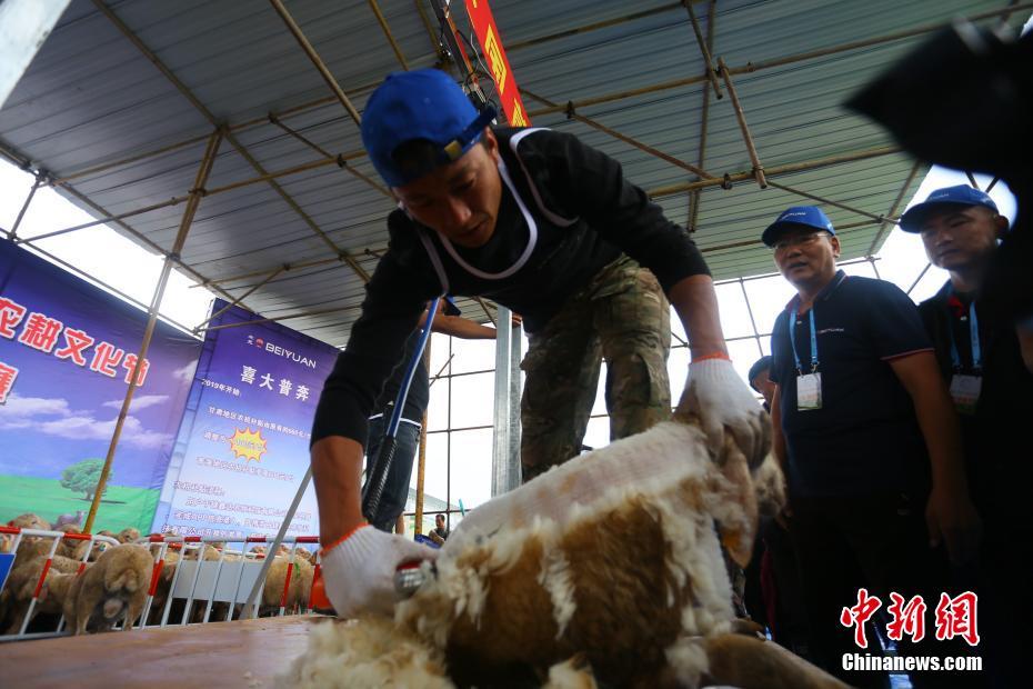 9月17日-19日,第十六届(2019)中国羊业发展大会在甘肃省庆阳市举办,活动期间举行了第四届“北元杯”全国剪羊毛大赛。来自新疆、青海、山东、内蒙古自治区、山西、甘肃等地的32名选手参加了比赛其中包括4位女选手。剪毛大赛上,较乖的小羊让剪毛手很省心。但是不听话的小羊还是比较费事的,剪毛手一边要控制小羊,一边还要控制剪毛机来剪毛,并避免伤到羊羔,相当耗费体力。高展 摄