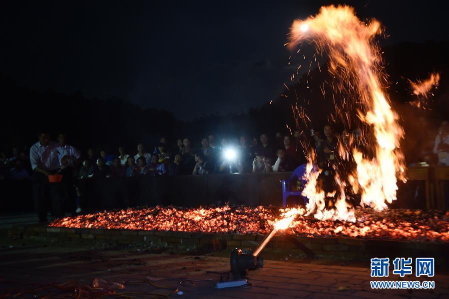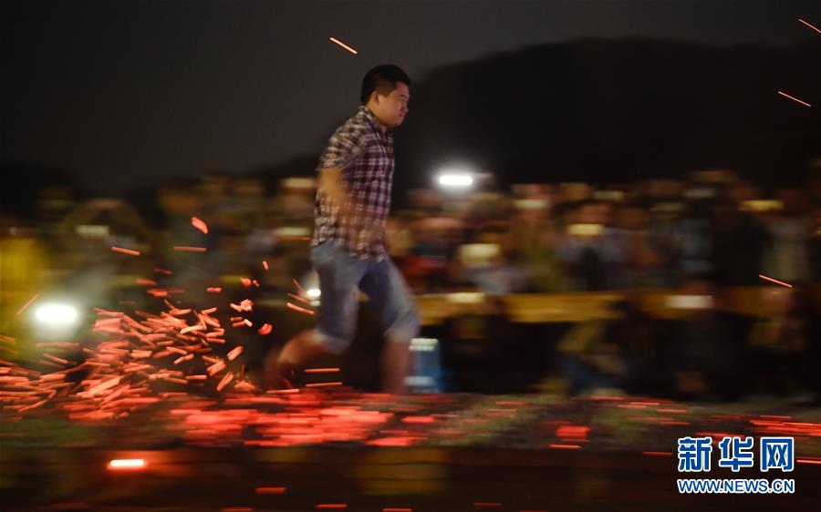11月14日,福建省武平县永平乡中湍村村民向游客展示传统民俗。福建省武平县位于闽西山区,今年以来,当地深入挖掘客家民俗和生态文化,通过一系列传统乡土民俗活动打造乡村旅游品牌,大力发展全域旅游。新华社记者 宋为伟摄