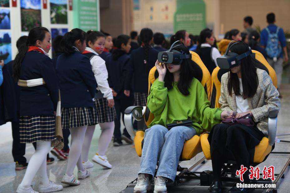 9月26日,观众参观展览。当日,“辉煌70年——云南省庆祝中华人民共和国成立70周年成就展”在昆明开展。本次成就展展览面积约7500平方米,共展出文字内容9万余字、图片3000余张,档案资料、少数民族生产生活用品、奖章奖状、非遗作品等实物500余件,并充分利用全息影像技术、VR、AR等,让观众全方位感受70年来云岭大地的沧桑巨变。中新社记者 康平 摄