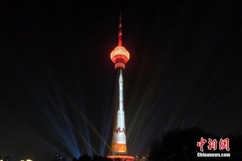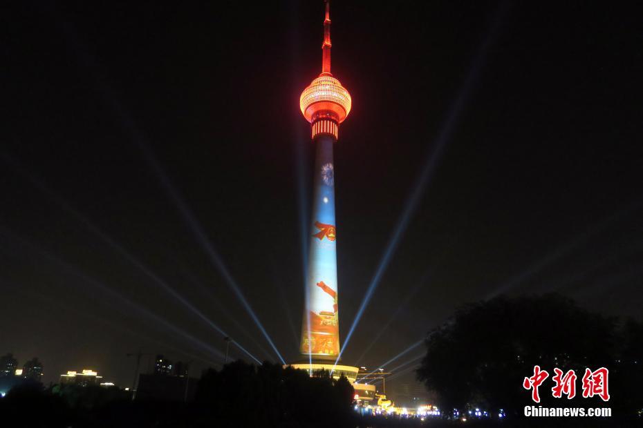 国庆灯光秀亮相中央电视塔