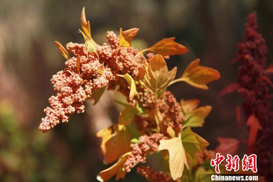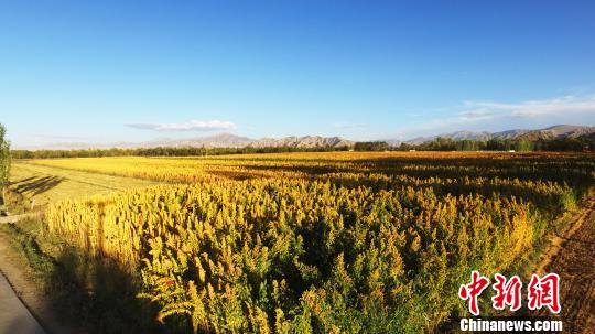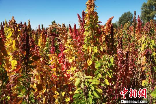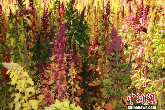 在柴达木盆地深处的都兰县,只见不同品种藜麦成熟的麦穗呈现出火红、金黄、紫红等五彩斑斓的色彩,麦田宛如一幅幅天然的油画,美不胜收。