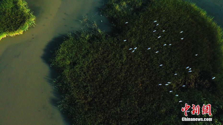 深秋时节,地处甘肃张掖市黑河湿地国家级自然保护区高台马尾湖、明塘湖、天城湖等湿地保护区内,大批南迁的白琵鹭在此停歇,时而觅食嬉戏,时而翩翩起舞,成为秋日黑河湿地靓丽的风景线。高台黑河湿地是张掖黑河湿地国家级自然保护区的核心区,良好的生态环境为候鸟迁徙停留创造了得天独厚的栖息条件。郑耀德 摄