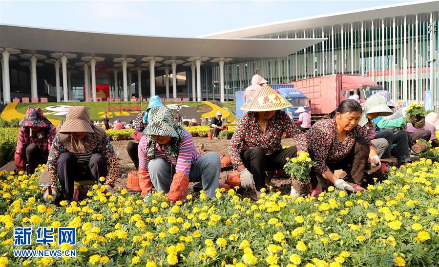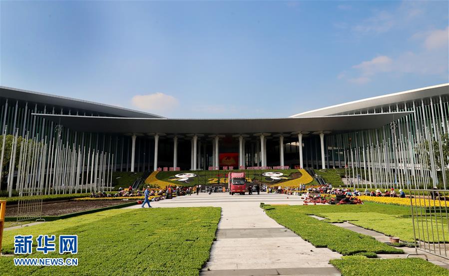进博会开幕在即 场馆装饰紧锣密鼓