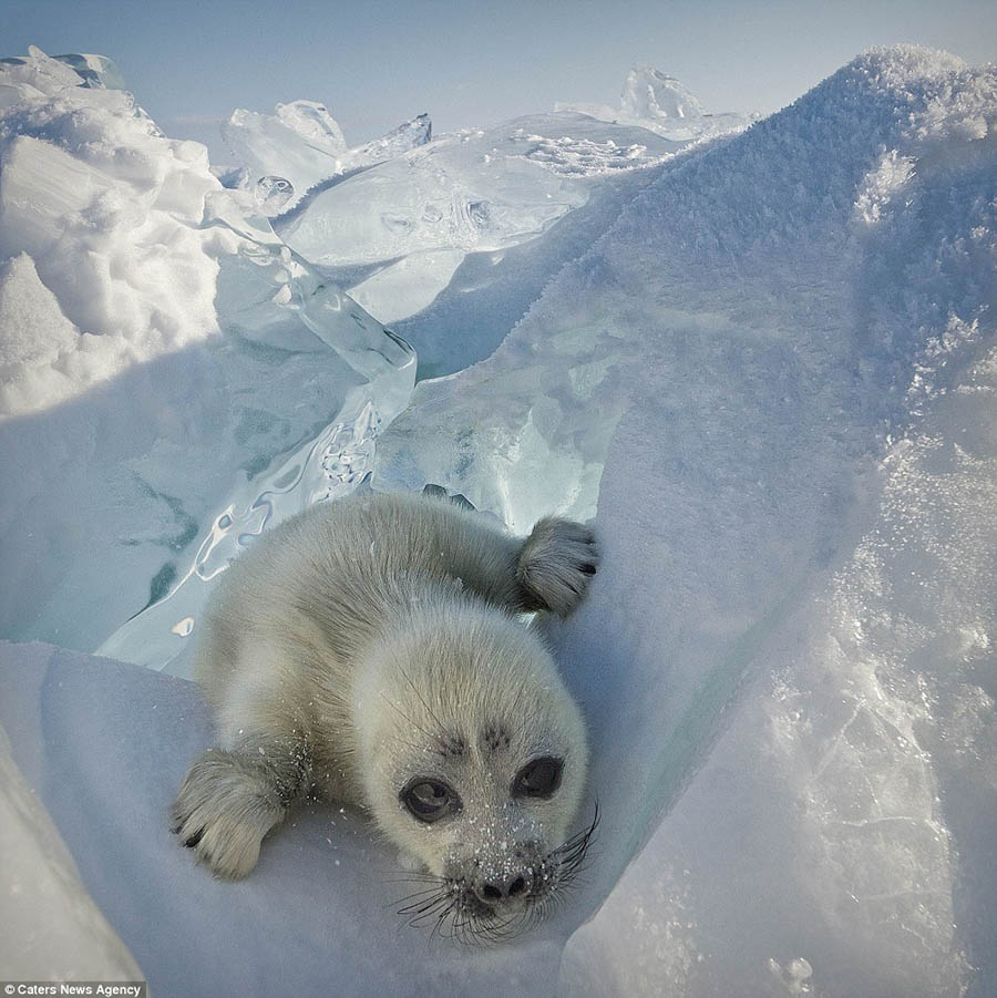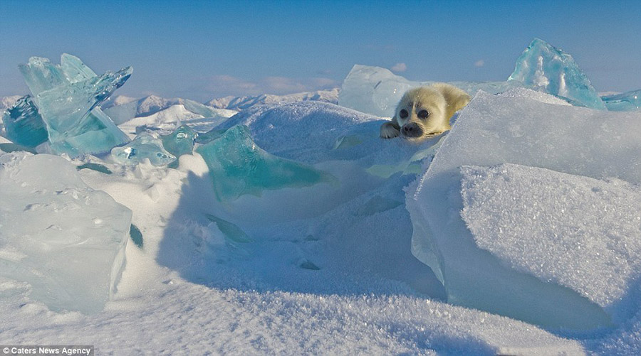 今年45岁的摄影师Alexy Trofimov在俄罗斯的贝加尔湖拍摄到了这只小家伙。他说:“为了拍摄海豹,我必须徒步前进。我从不同的距离拍摄下这组照片,想方设法地去尽量接近它。”