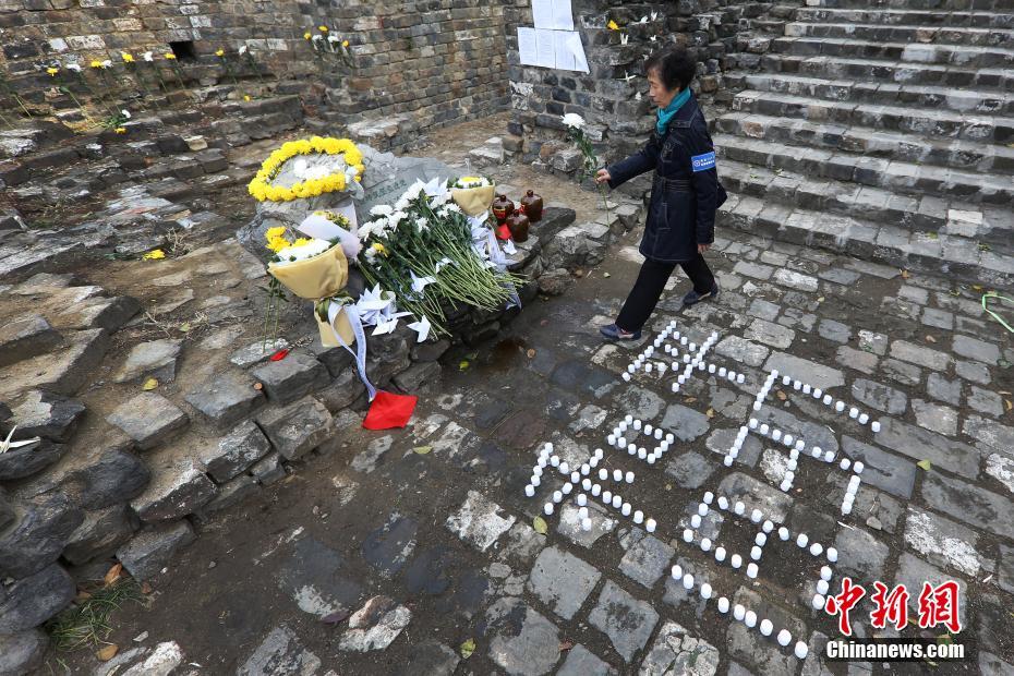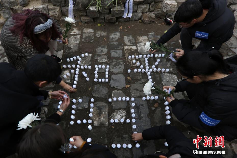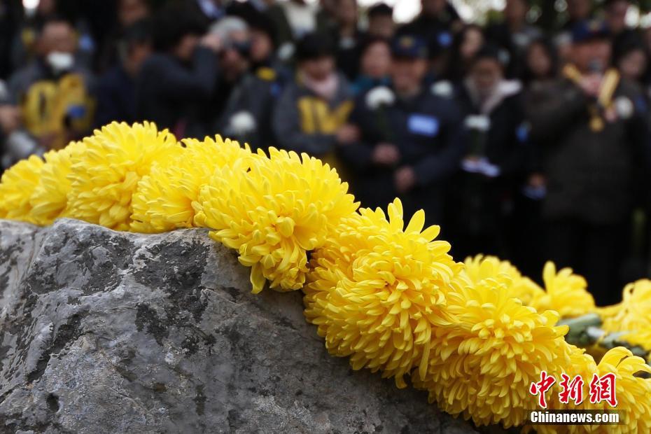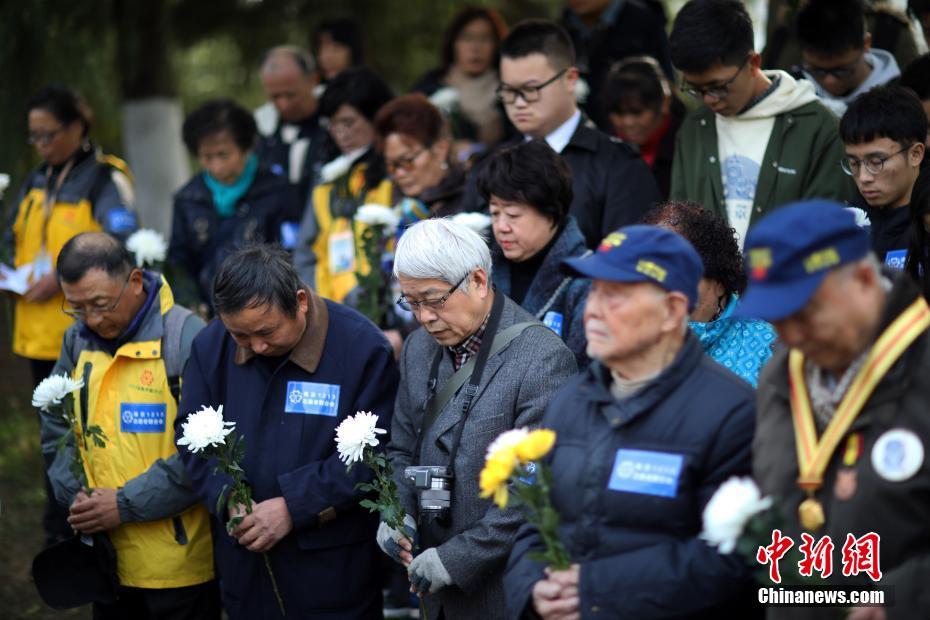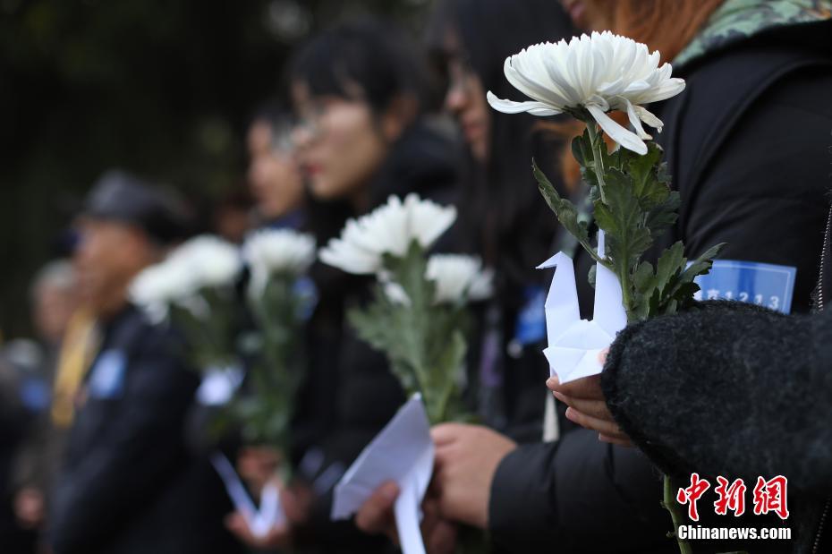 12月12日,在第六个国家公祭日到来之际,参加过当年战争的抗战老兵、侵华日军南京大屠杀遇难者遗属、南京1213志愿者联合会的志愿者等来到南京光华门遗址公园,向1937年曾经发生过激烈战斗的这片阵地献上菊花,祈愿和平。中新社记者 泱波 摄