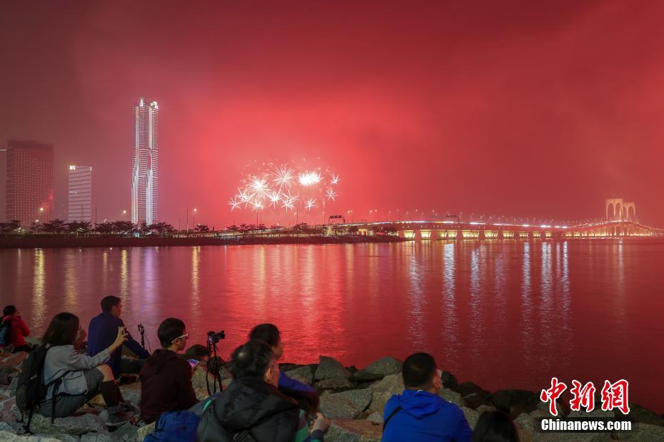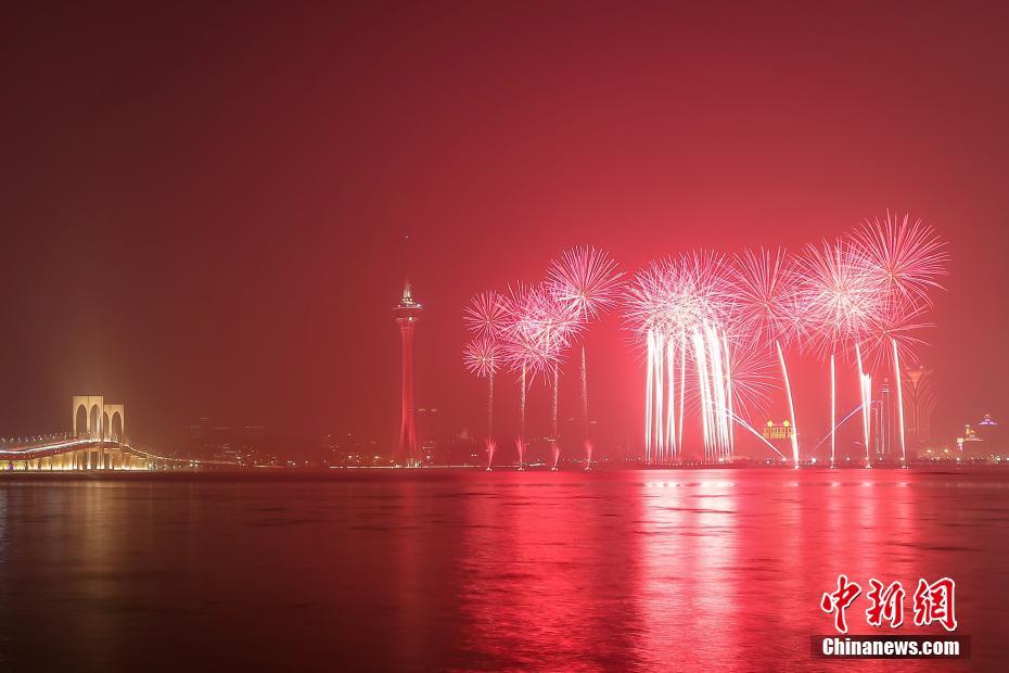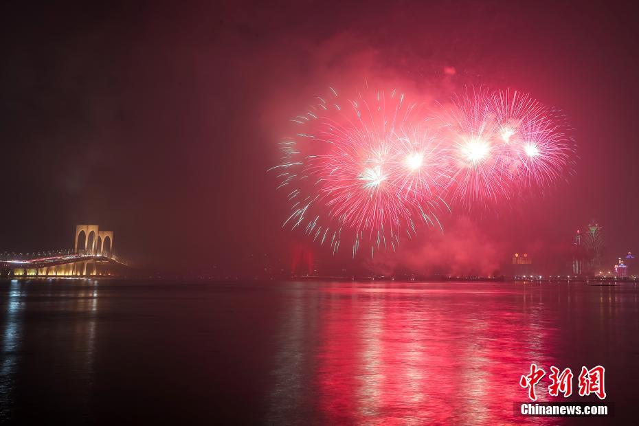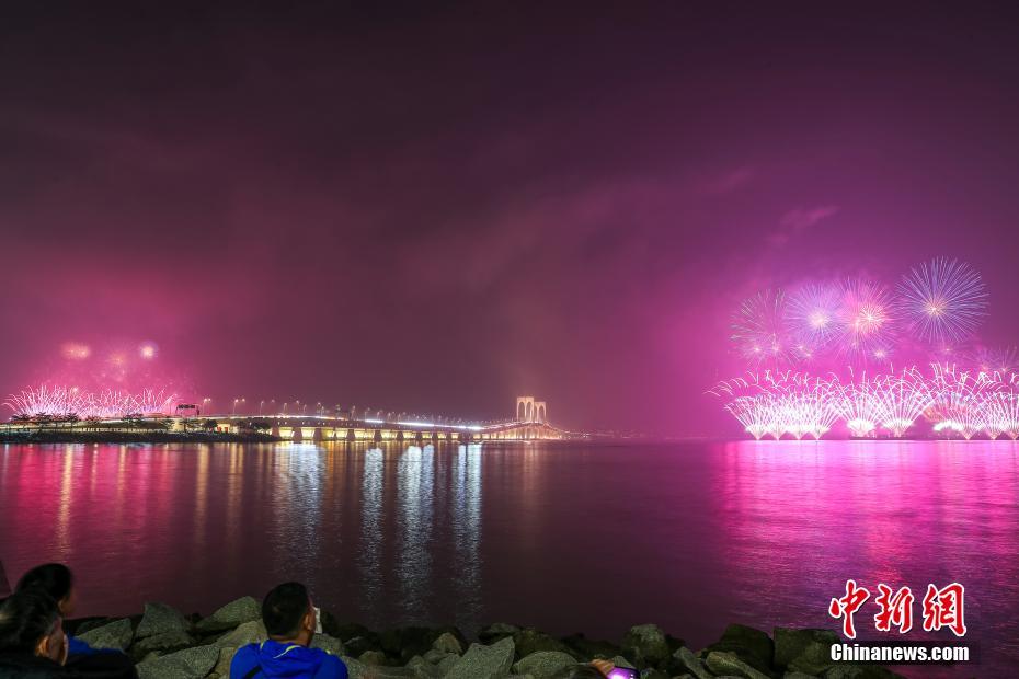澳门与珠海首次联合举行烟花汇演庆祝澳门回归20周年