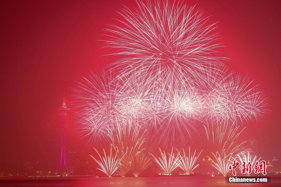 12月22日晚上9时,澳门特别行政区政府与珠海市人民政府在澳门旅游塔及珠海横琴金融岛对出海面举行“庆祝澳门回归祖国20周年澳珠烟花汇演”,这是澳门与珠海首次联合举行烟花汇演。历时30分钟的烟花汇演发射16万枚烟花,分为“美丽中国、欢庆家园”“岁月如歌、相约澳门”“澳珠一家、邻里情深”及“守望相助、共建湾区”4个篇章。中新社记者 谢光磊 摄