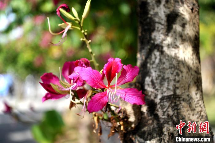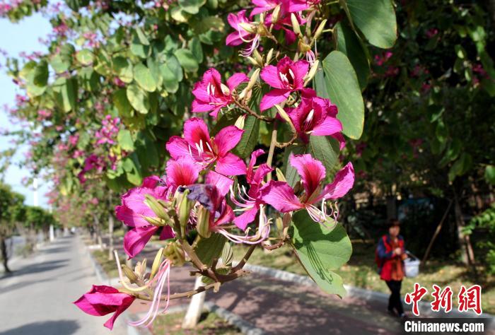 1月2日,福州市区一些街道两旁种植的洋紫荆盛开,成为冬日里的一景。洋紫荆又称“羊蹄甲”,是福州特色绿化树之一。