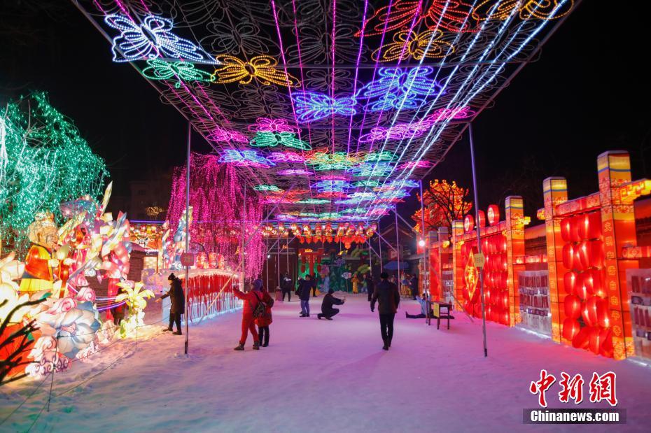 首届哈尔滨道台府冰雪灯会引游客观赏