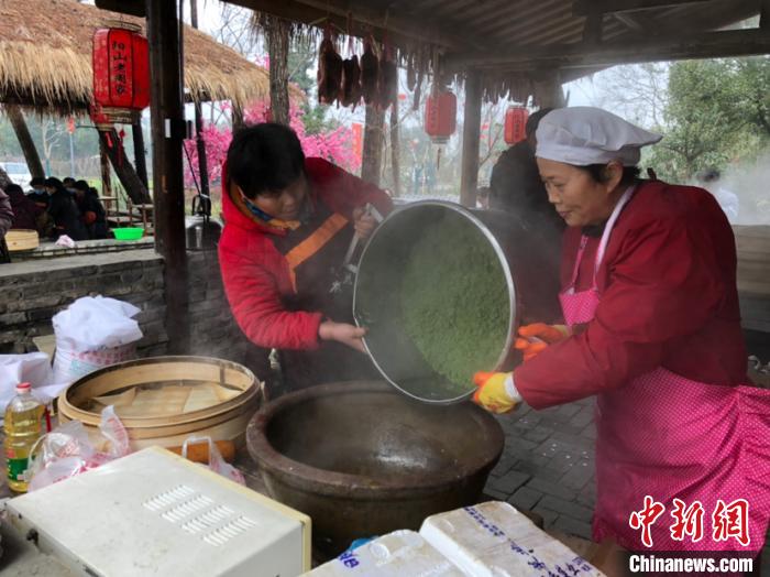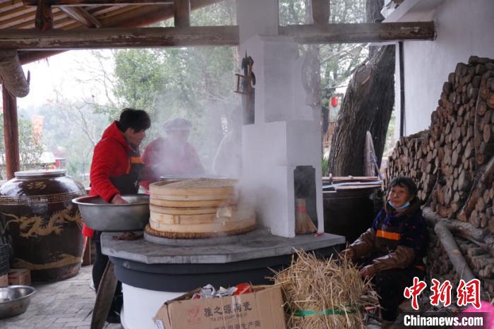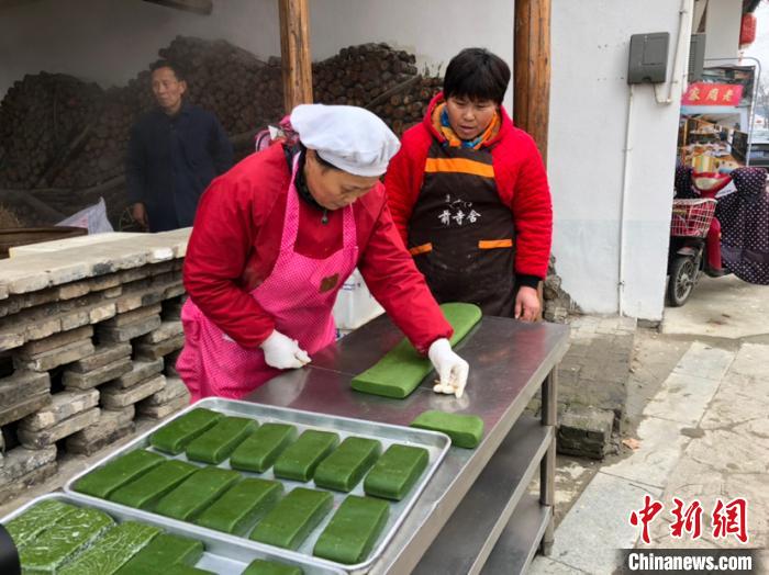 1月12日,在“中国水蜜桃之乡”无锡阳山,当地前寺舍村的村民们早早起床,忙着蒸青团、做年糕、酿米酒,迎接即将到来的农历新年。蒸青团、做年糕、酿米酒是江南农村过年之前的“保留项目”。每年的新春到来之际,无锡阳山地区的农户们就会“全村总动员”,一起忙活,为新年做准备。