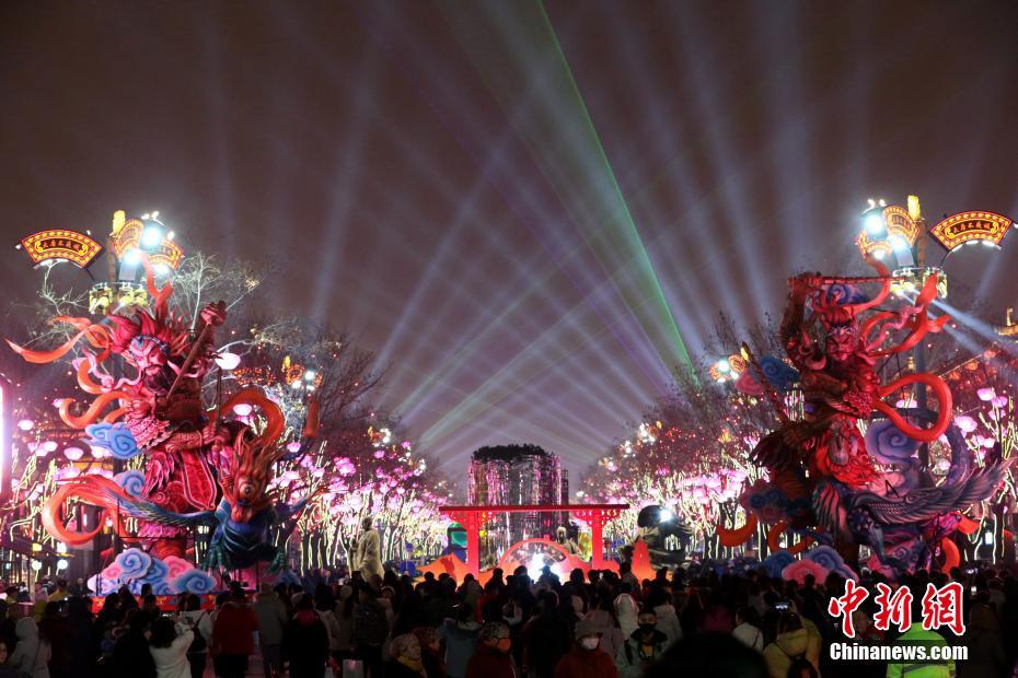 1月14日,西安大唐不夜城内人头攒动。春节临近,西安曲江大唐不夜城灯光璀璨、“点亮”夜空,吸引了市民游客前来游玩。中新社记者 张远 摄