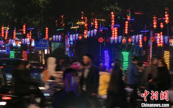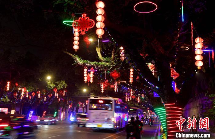 福州街头彩灯装饰一新迎佳节