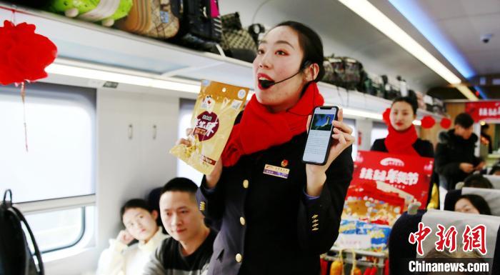 鼠年春节前夕,在成都至巴中的C5782次列车上,中国铁路成都局集团有限公司成都客运段举办了“扶贫年货节”,销售的商品全是产自铁路沿线贫困地区的各类农副产品。