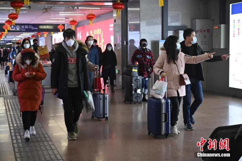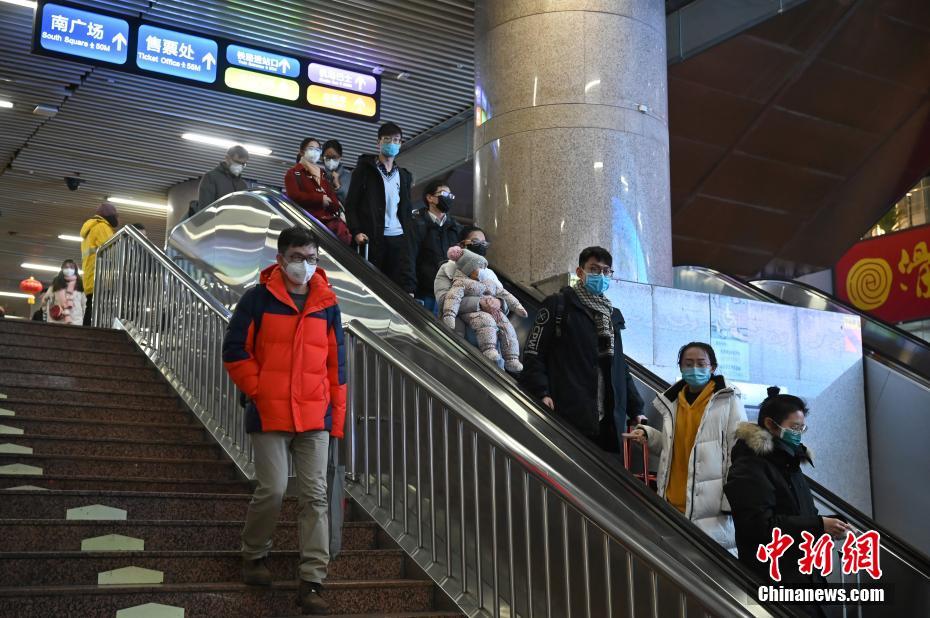 1月30日,北京西站,旅客佩戴口罩出站。当天是农历大年初六,春运即将迎来返程高峰。由于受到新型冠状病毒感染的肺炎疫情影响,从北京西站出站的旅客基本全部佩戴口罩。 中新社记者 张兴龙 摄