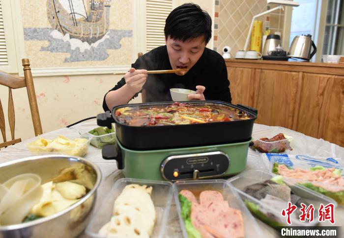2月16日,因重庆所有小区实行了封闭式管理,重庆市民付先生通过手机下单点外卖在家烫火锅。近日,为配合做好新型冠状肺炎疫情防控工作,当地一些火锅企业在重庆市商务委和相关部门的指导下,为消费者提供了零接触火锅外卖服务。消费者通过电话、微信等互联网平台点餐享受火锅“盛宴”,而商家在菜品采购、加工、配送等环节也采取了一定的消毒、防护等安全措施。