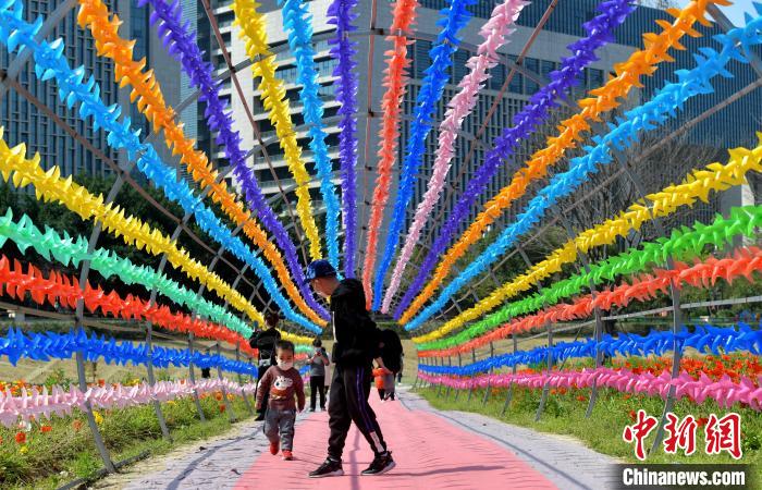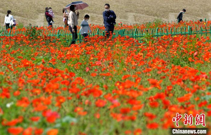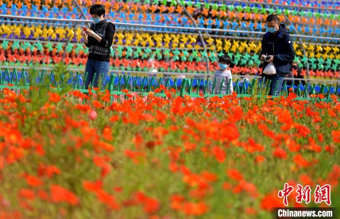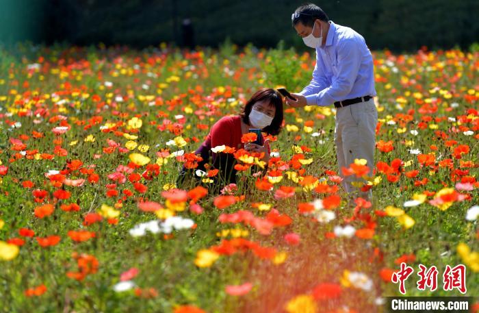 2月23日,戴着口罩的民众在福州花海公园游玩赏花,享受明媚春光。当日,据福建省卫生健康委员会通报,2月22日0时到24时,福建省报告新增确诊病例0例、疑似病例0例,新增治愈出院病例15例。福建已连续四天“零新增”,而且现有疑似病例首度清零,治愈率超五成。