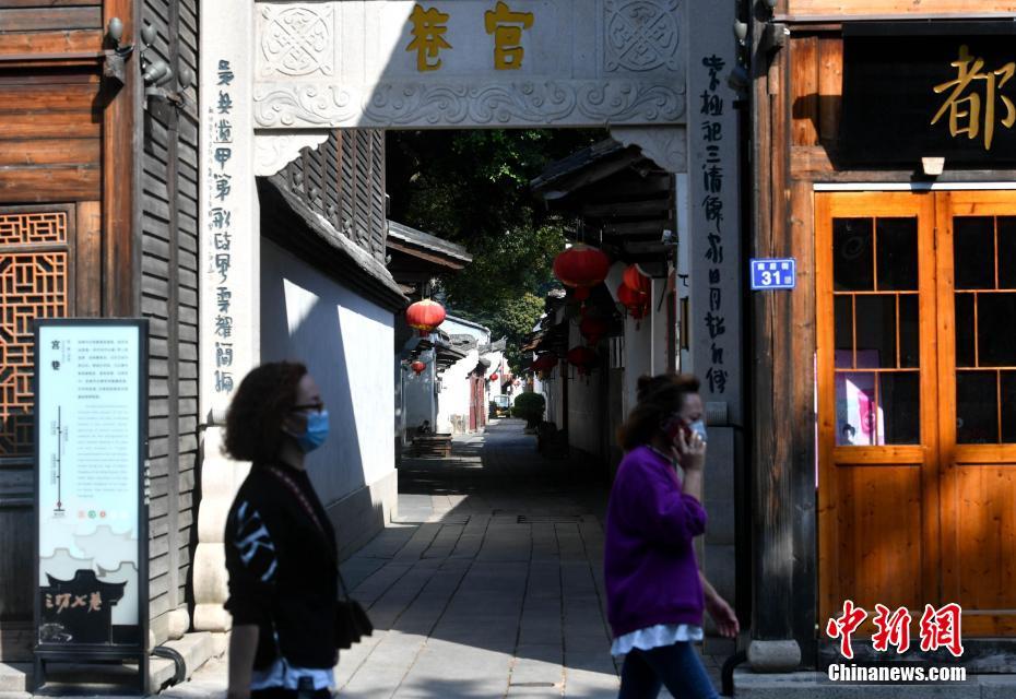 2月24日,市民游客在福州三坊七巷南后街路段游玩。福州三坊七巷已于近日开放通行,市民游客游览时必须佩戴口罩、不能聚集。中新社记者 吕明 摄