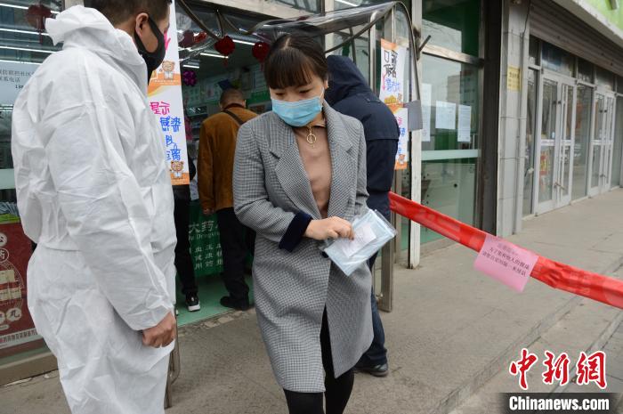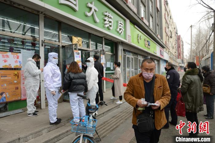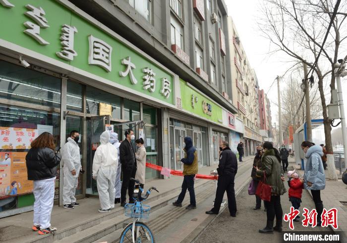 2月27日,民众预约后购买口罩。当日,内蒙古自治区新冠肺炎疫情防控工作指挥部为呼和浩特市投放的7万只口罩开始预约销售,市民可凭身份证通过网上预约,每人限购5只,在当地指定的24家连锁药店购买。