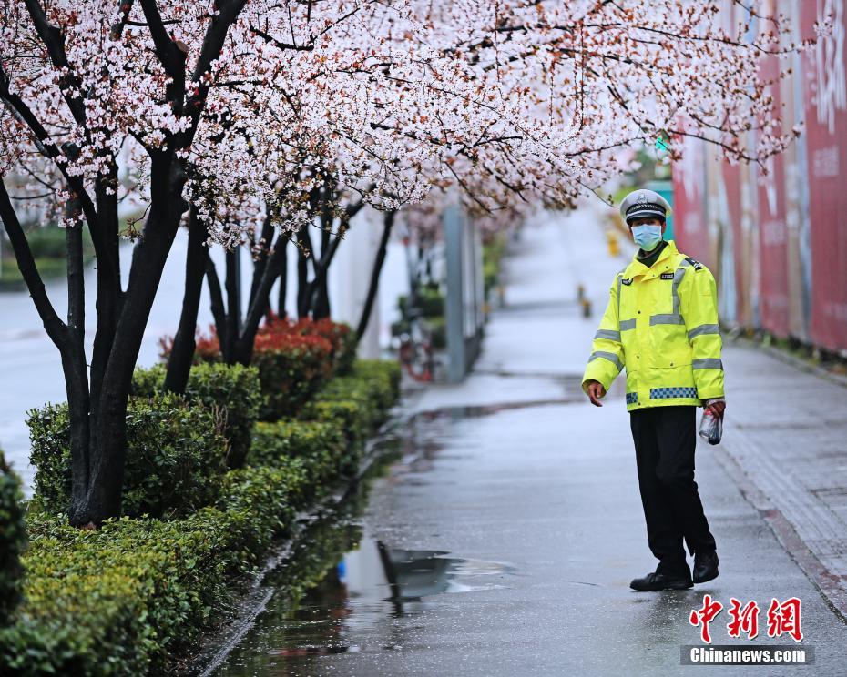3月2日傍晚,在湖北省宜昌市城东大道中段,人行道上的红叶李盛开着,下班回家的超市送货员匆匆走过。连日来,当地的医生、交警、社区工作者、消防人员、环卫工人等坚守在因疫情而“封住”的城市里,或奋战一线,或默默奉献,为打赢这场疫情阻击战贡献着自己的力量。李风 摄