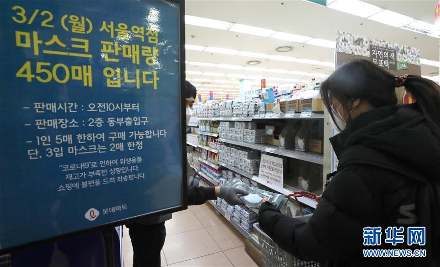 3月2日,在韩国忠清北道清州市,人们排起了长队购买口罩。 韩国疾病管理本部2日发布的最新统计数据显示,当地时间1日16时至2日0时,韩国新增476例新冠病毒感染病例,新增死亡4例,新增治愈1例,累计确诊病例增至4212例。 新华社/纽西斯通讯社