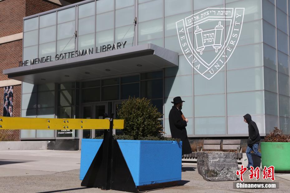 当地时间3月4日,纽约耶希瓦大学(Yeshiva University)维尔福校区戴口罩的工作人员。当日,一名新冠肺炎确诊患者所就读的耶希瓦大学发表公告称,在得到检测结果后,校方决定取消这名学生所在的维尔福校区周三全天的课程。中新社记者 廖攀 摄