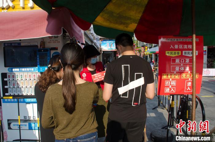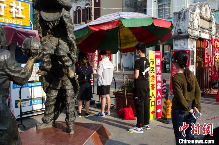 3月8日,游客在国家4A级景区广西北海老街游览。北海是广西最先报告确诊新冠肺炎病例的著名旅游城市,近日,北海老城景区、北海银滩公园、园博园,金海湾红树林等A级景区已陆续恢复开放。游客进入景区需要经过体温测量、扫码登记、身份证查验等步骤。