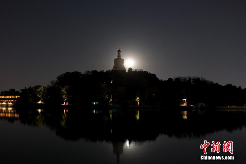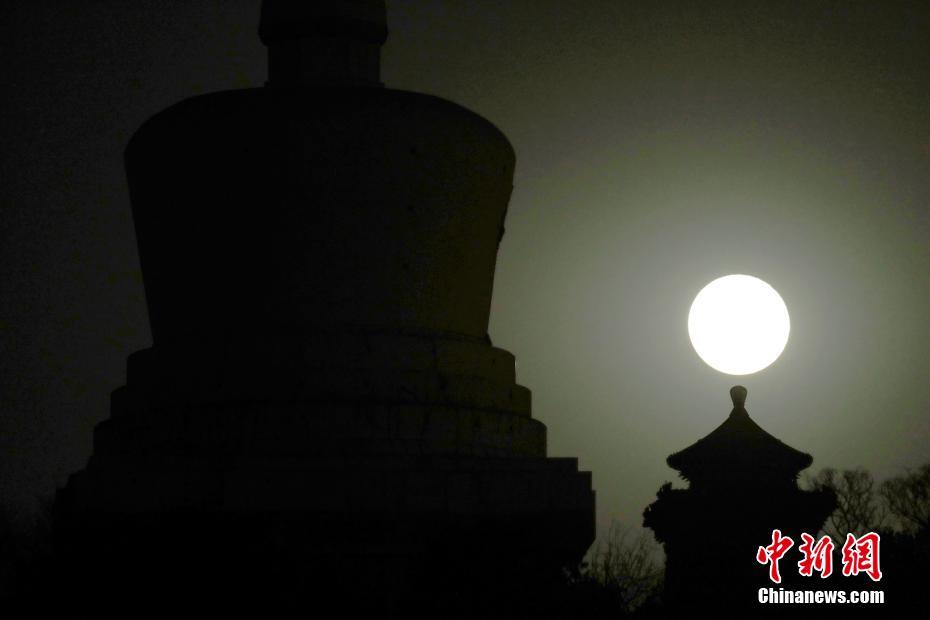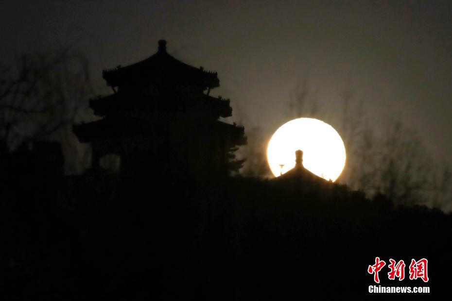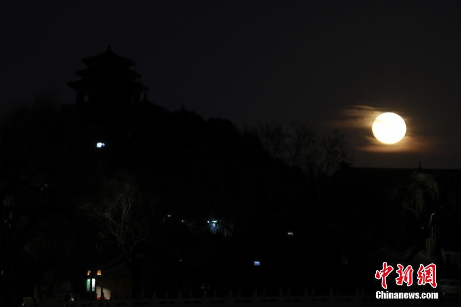 3月10日晚,“超级月亮”在北京登场。图为正阳门箭楼与“超级月亮”。中新社记者 毛建军 摄